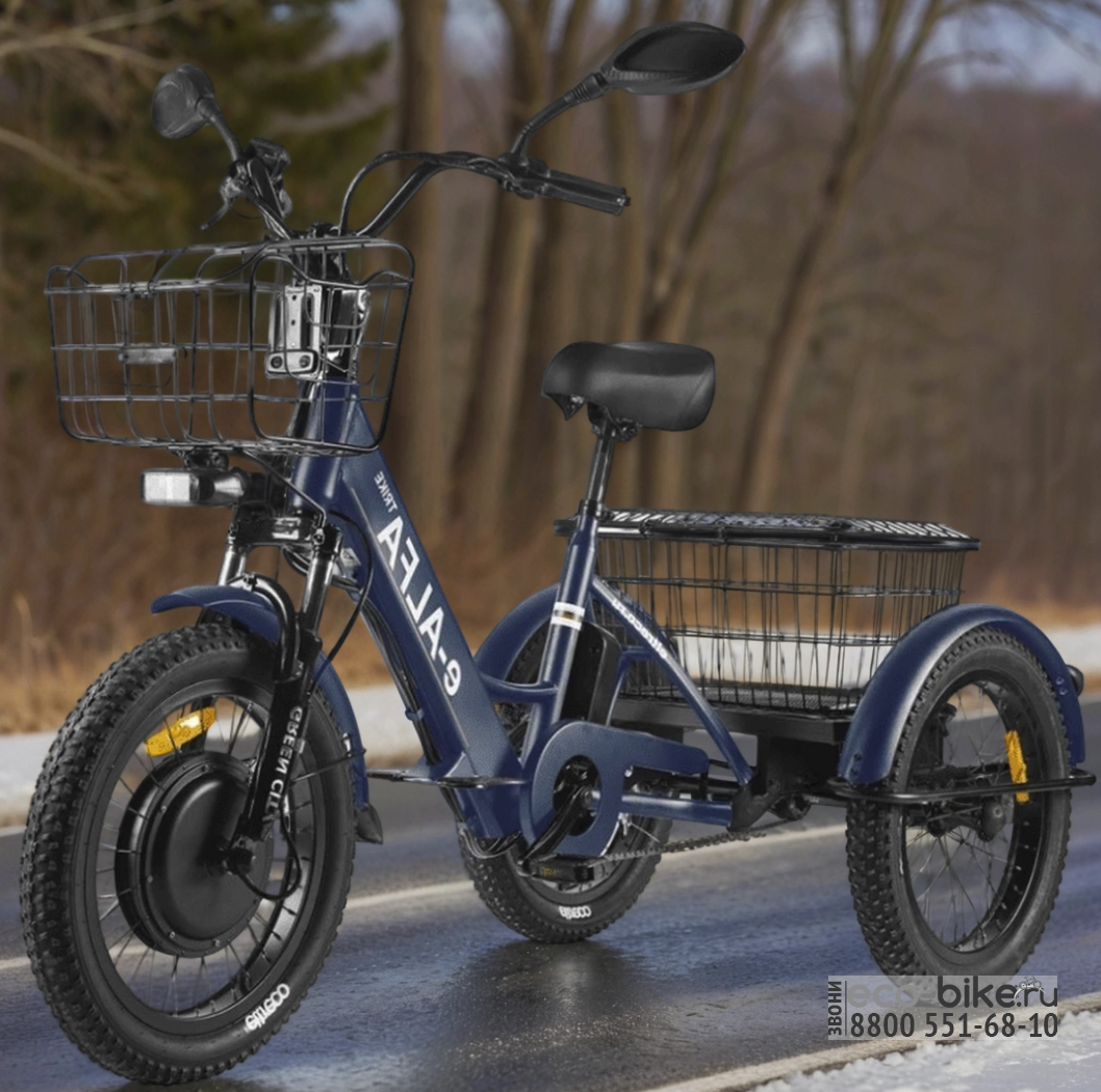 Электровелосипед GREEN CITY e-ALFA Trike - переднеприводной трицикл или трехколесный электровелосипед. Экологичный транспорт для дачи. Оснащен уникальным механизмом, облегчающим поворот, для повышения маневренности. Стальная рама трицикла выдерживает нагрузку до 120 кг для возможности использования электровелосипеда людям разной комплекции и возраста. Колес собраны на основе двойных ободов с усиленными стальными спицами, что помогает перевозить грузы средней тяжести. Электродвигатель трицикла мощностью 500 Вт справляется с высокими нагрузками, а аккумулятор позволяет проехать до 40 километров на одном заряде. Комфорт и мягкость хода – еще одни преимущества велогибрида. Амортизаторы находятся в вилке.Широкое седло также подпружинено. Это означает, что на самых разбитых дачных дорогах райдер будет чувствовать себя комфортно даже с грузом на задней площадке.